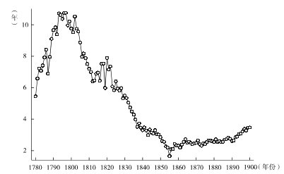 图8:1780~1900年州议员平均任期